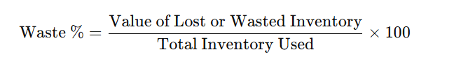 | Waste/Shrinkage | Below 3% of total inventory |